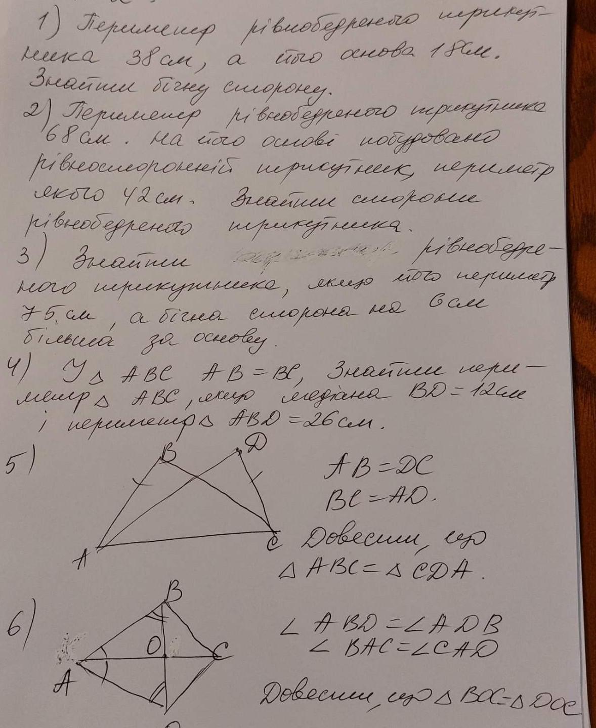 1) Перемиер рівнобедренно игринут його основа 11см. ника 38 см, а Знайши бічну сторону