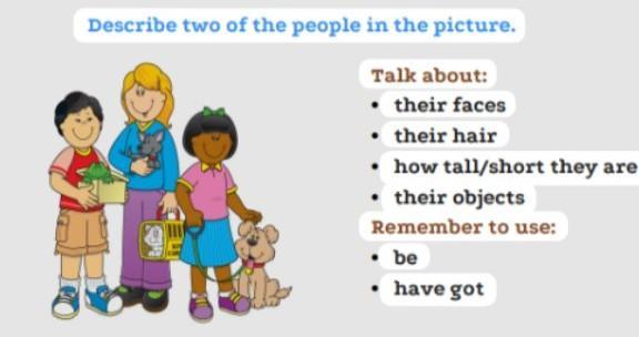 Ответ: This is a girl. She is smiling. She has got long blonde hair. She is the tallest child. She has got a dog in her hands and a cat in th carrying.
