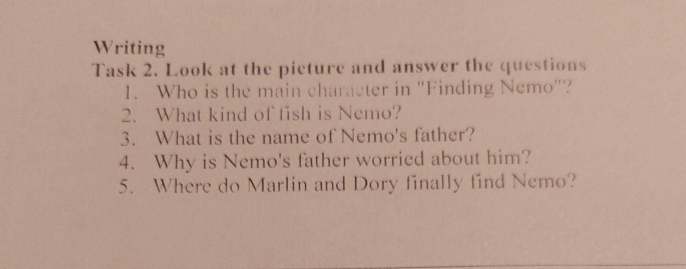 1.The main character of Finding Nemo is a clown fish named Marlin.