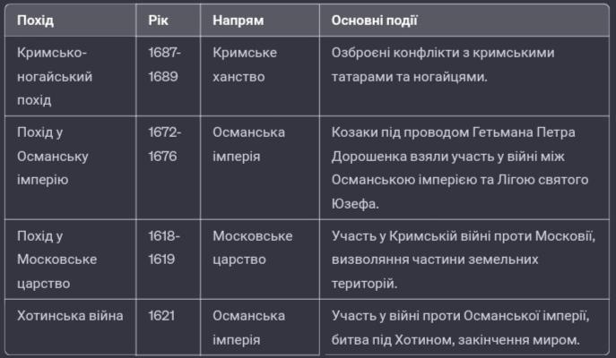 Скласти синхронізовану таблицю про походи козаків у Кримське ханство,Османську імперію,Московське царство,Хотинська війну.