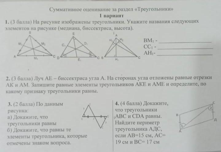 Ответ: BM = 150 CC = 22 an = 3 второе задание по признаку равенства треугольники будут равны элементы треугольников а ke и am e будут равны как противоположное совместимое углы третье задание треугольники равны по первому второму третьему признаку а б пункт треугольники отмечены знаком вопроса будут равны элементами двух противоположных сегментов четвёртое задание периметр треугольника ads будет равен 92