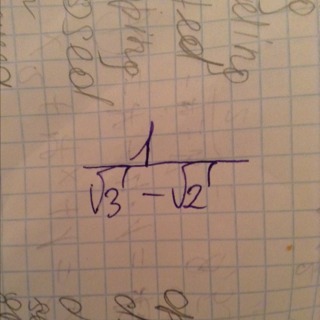 frac{1}{ sqrt{3}- sqrt{2}  } = frac{ sqrt{3} - sqrt{2} }{3-2} =  sqrt{3}- sqrt{2}