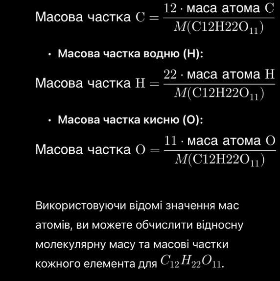 H_{22}O_{11}): M(C12H22O11) = 12 · маса атома С + 2
