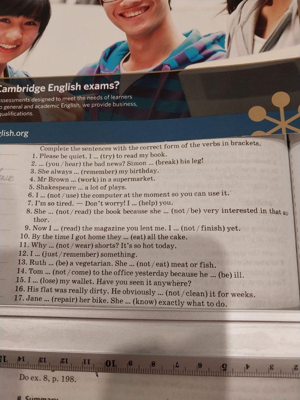 13. Ruth is a vegetarian. She doesn't eat meat or fish. Tom didn't come to the office yesterday because he was ill.