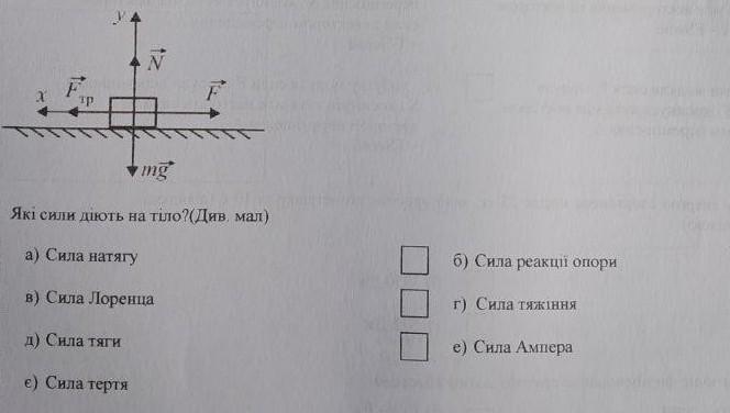 F IP N mg Які сили діють на тіло?