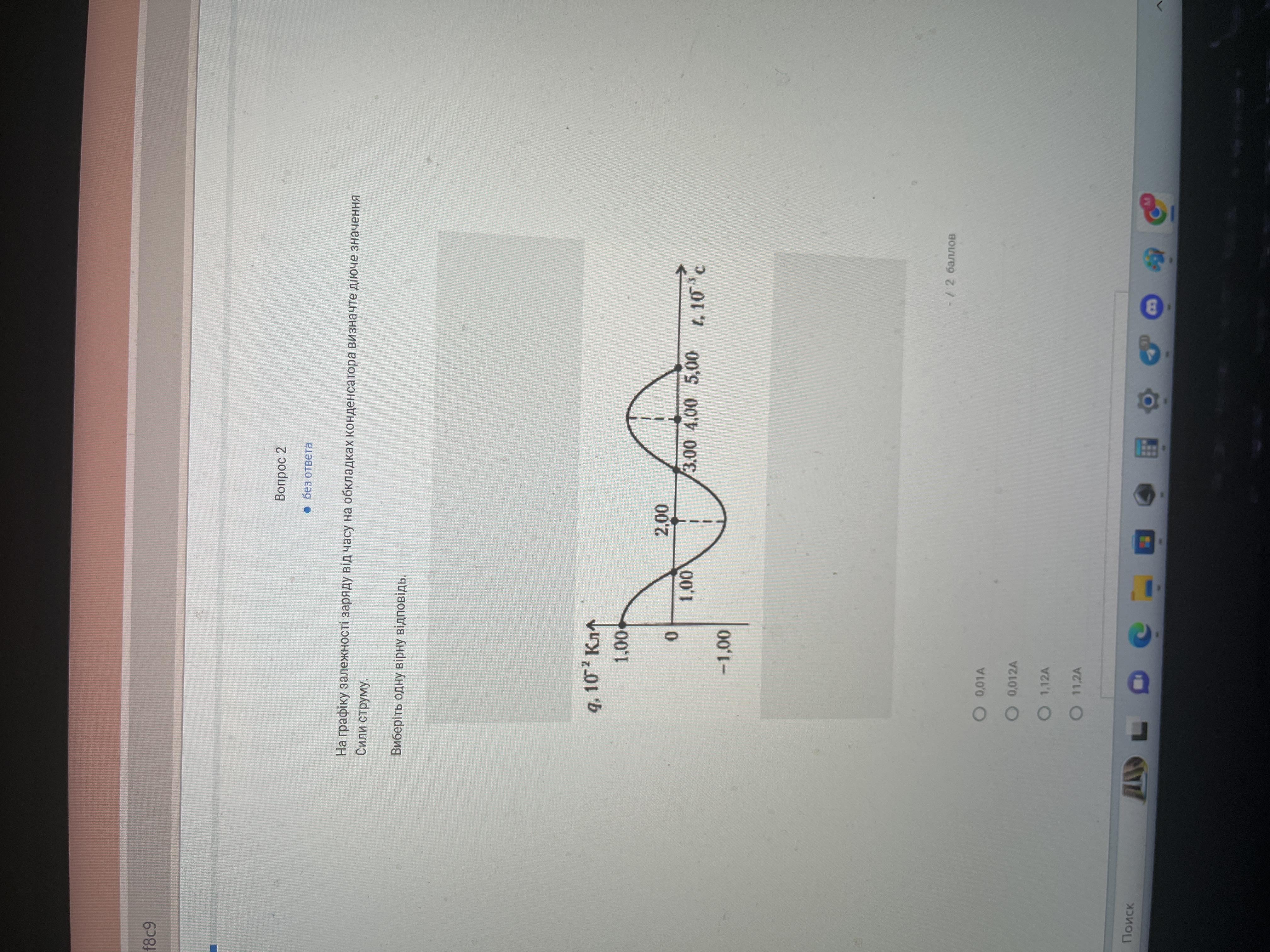 На графіку залежності від часу на обкладках конденсатора визначте діюче значення сили струму