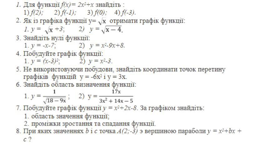 **3. Знайдіть нулі функції:**