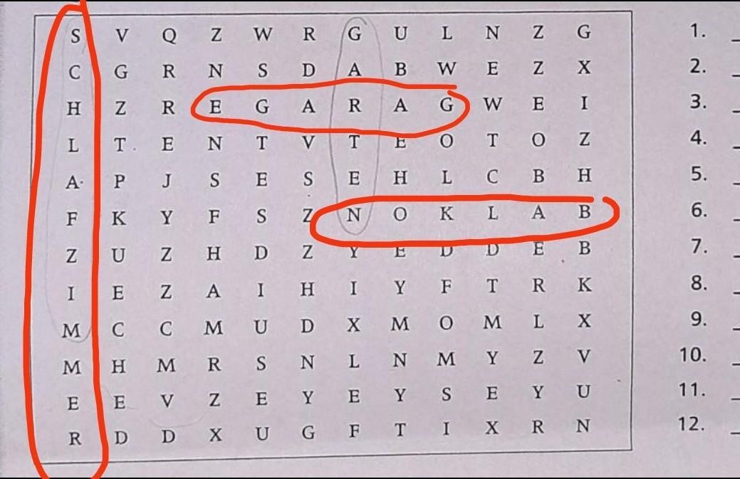 Wörterrätsel. Rund um das Haus. Suche zwölf Wörter!