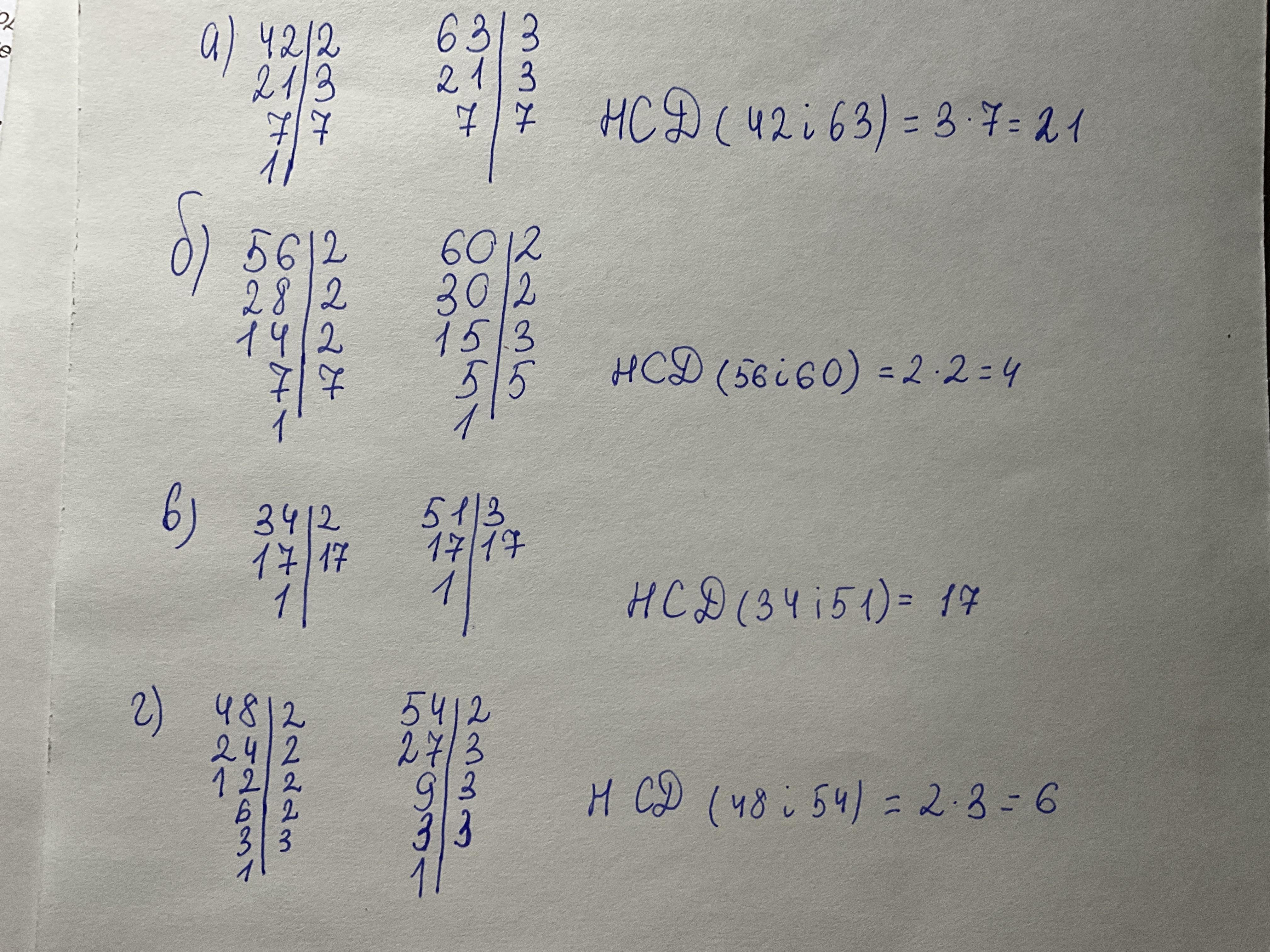 2. Знайди найбільший спільний дільник чисельника та знаменника дробу. Скороти дріб. a) 42|63 ; б) 56|60 B) ; 34|51 г) 48|54