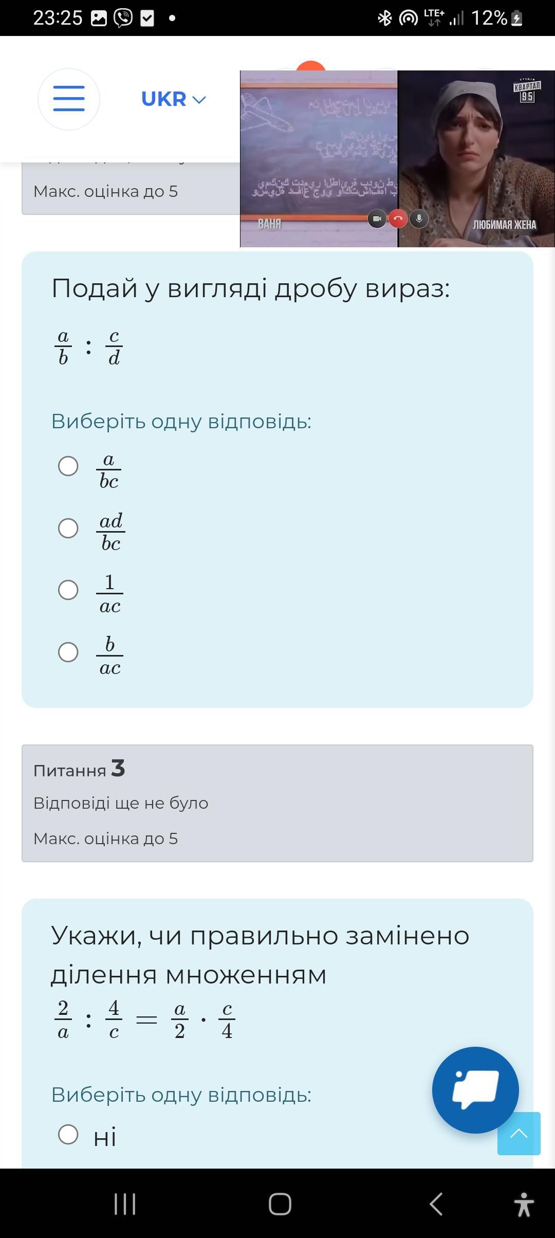 1. Подайте у вигляді дробу. Виберіть правильну відповідь (номер 2).