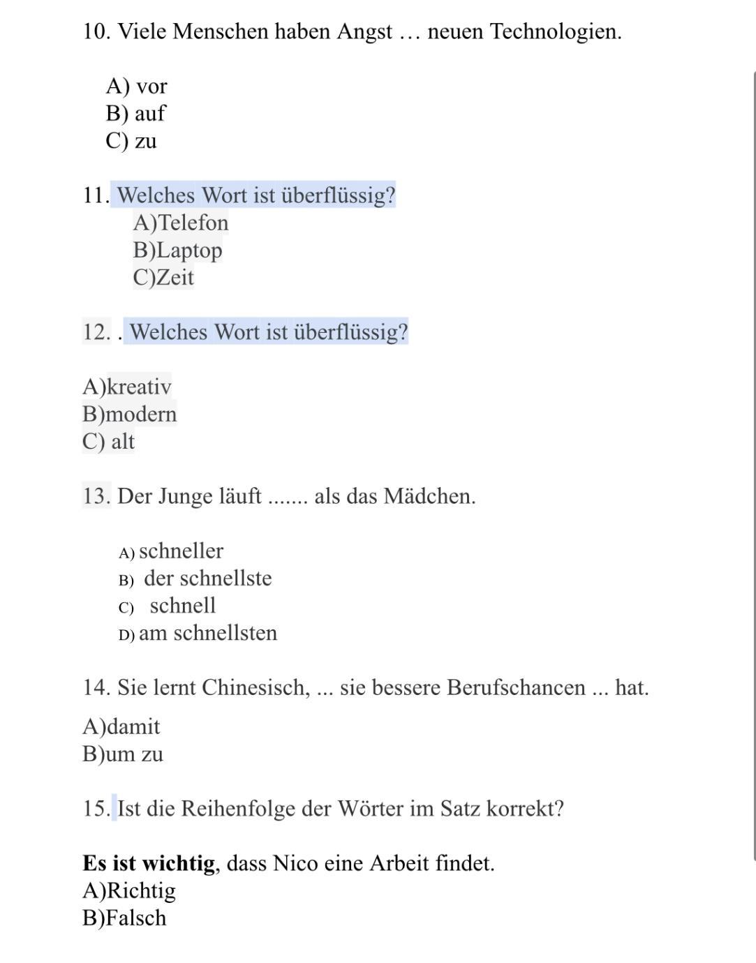 15. a) richtig