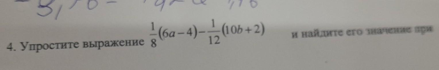 1/8(6а - 4) - 1/12(10в + 2) = 6/8а - 4/8 - 10/12в - 2/12 = 3/4а - 1/2 - 5/6в - 1/6 =