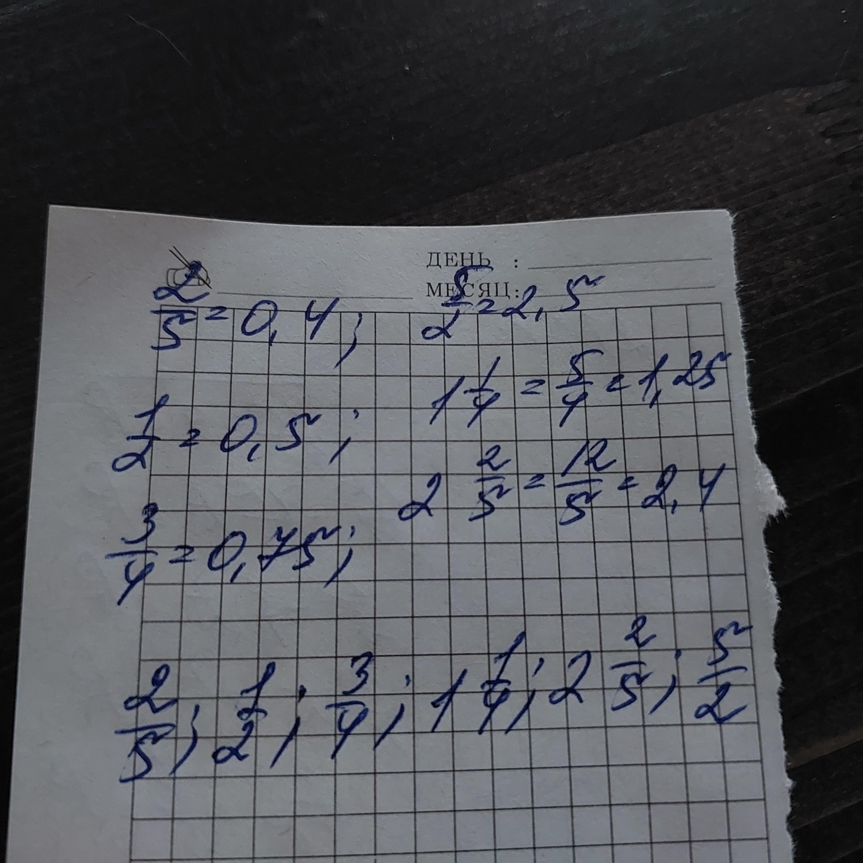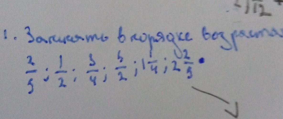 запишите в порядке возрастания: 2/5; 1/2; 3/4; 5/2; 1 1/4; 2 2/5•
