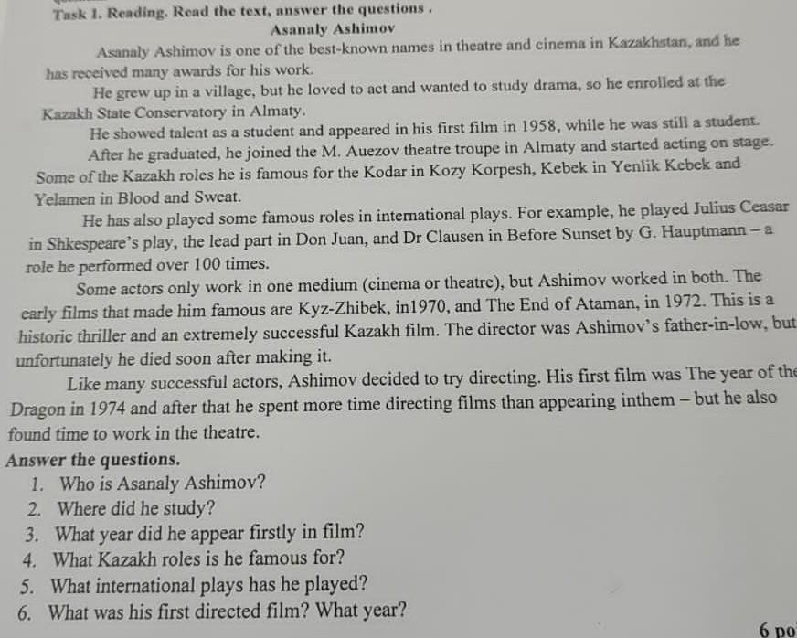 1) Asanali Ashimov is one of the best-known names in theatre and cinema in Kazakhstan.