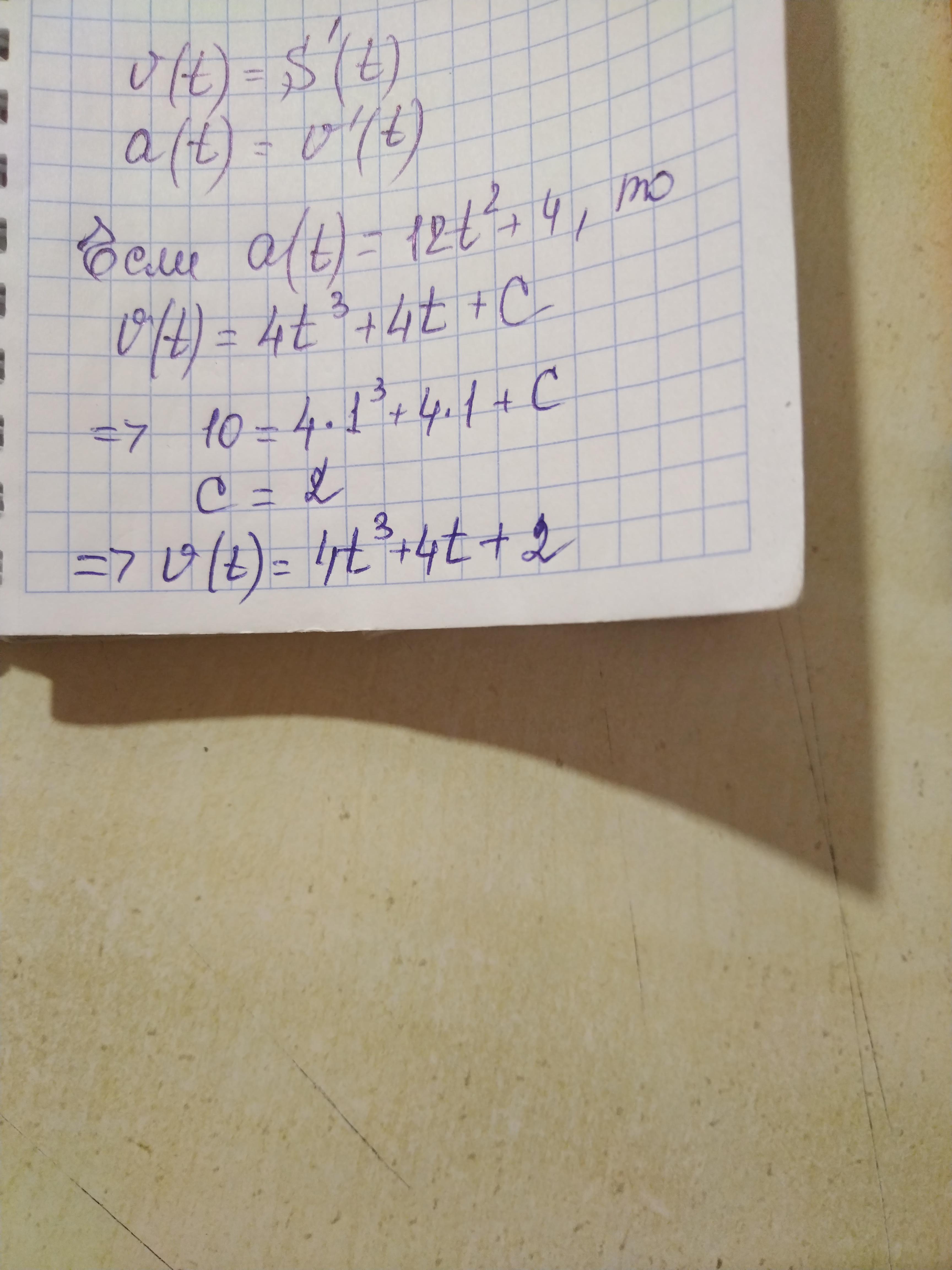 a(t) = 12t² + 4. Знайдіть рівняння швидкості v = v(t), якщо