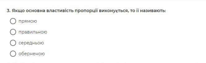 3. Якщо основна властивість пропорцiï виконується, то її називають: прямою правильною середньою О оберненою