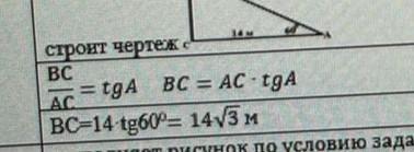 Верхушка дерева видна из точки, расположенной на расстоянии 14 м от его основания, под углом 60 градусов. Найдите высоту дерева