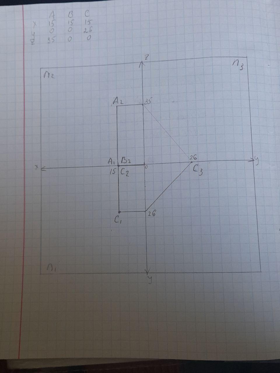 A(15;0;35) B(15;0;0) C(15;25;0)