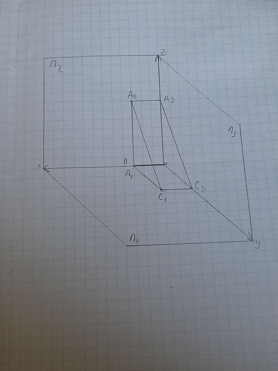 по координатам вершин A, B и C построить комплексный чертеж треугольника и определить его положение относительно плоскостей проекций