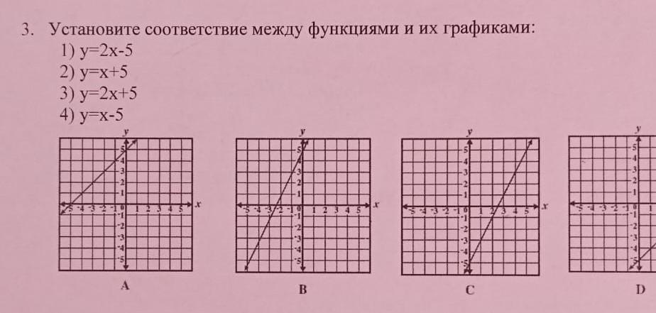 Все 4 функции вида y = kx + b. если b > 0, то прямая соприкасается с осью ординат выше оси абсцисс, а если b < 0, то прямая соприкасается с осью ординат ниже оси абсцисс.