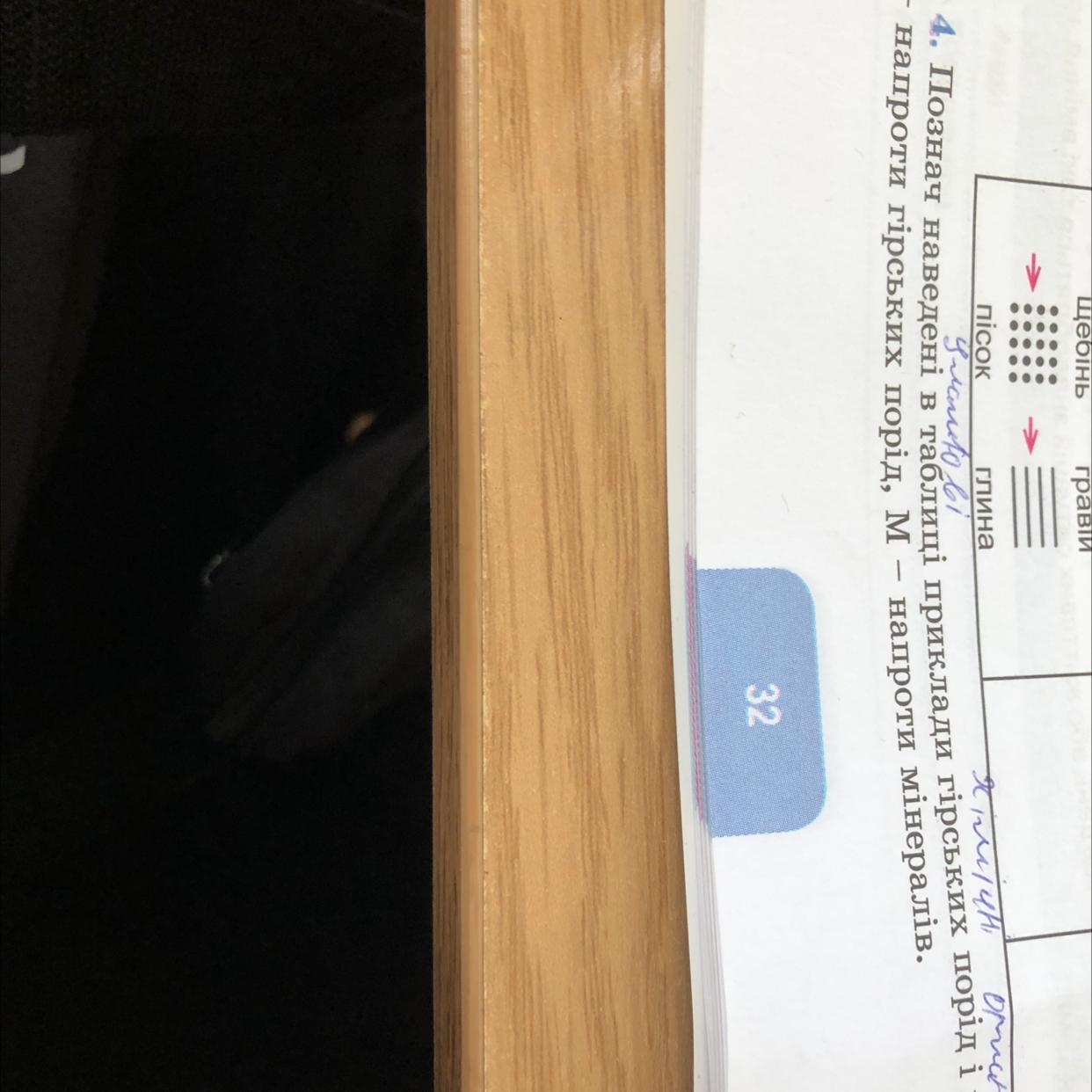 4 познач наведені в таблиці приклади гірських порід і мінералів буквою г напроти гірських порід М - напроти мінералів