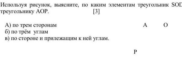 Используя рисунок, выясните, по каким элементам треугольник SOD равен треугольнику АОР.
