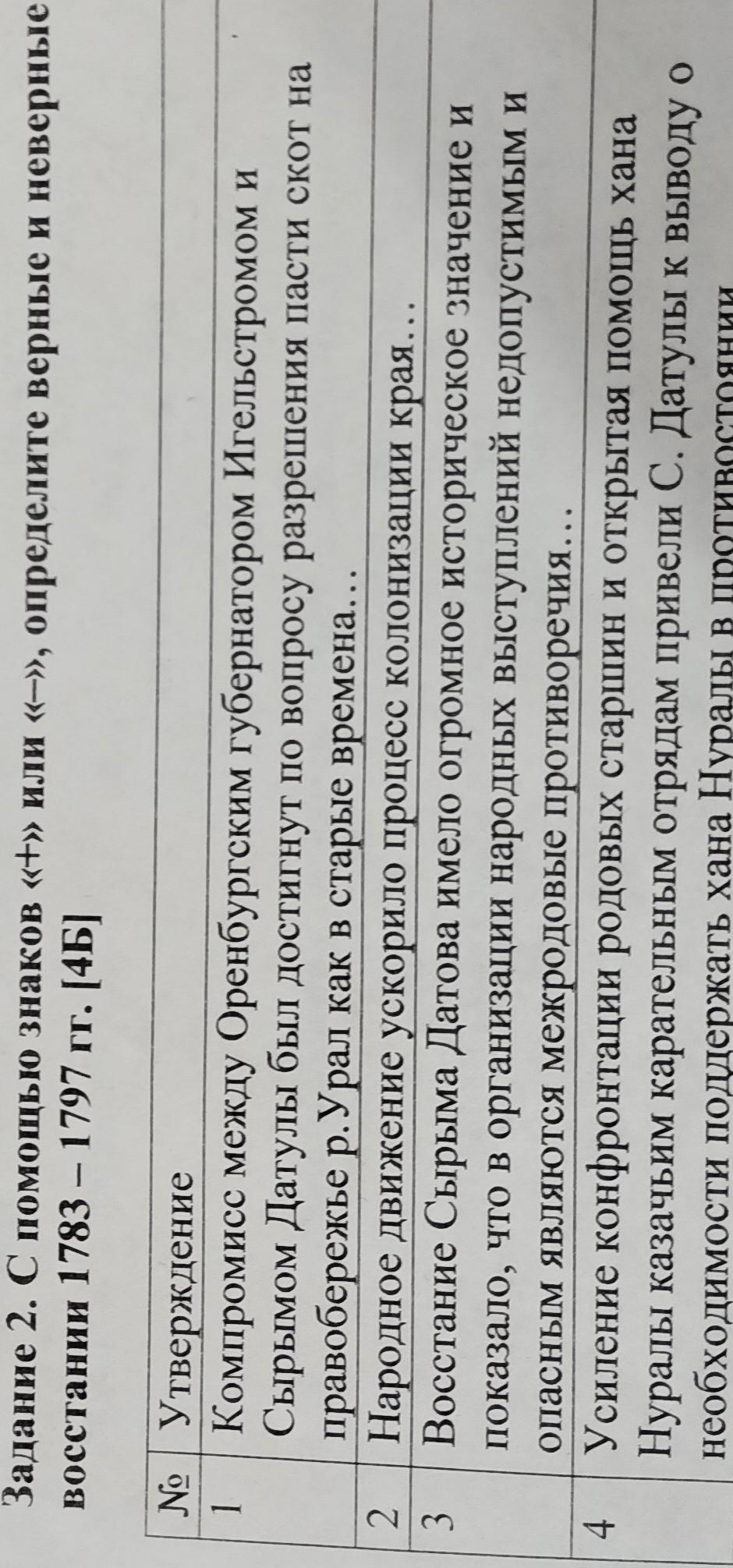 Задание 2. С помощью знаков «т» или «-», определите верные и неверные утверждения в восстании 1783-1797 гг. [46]