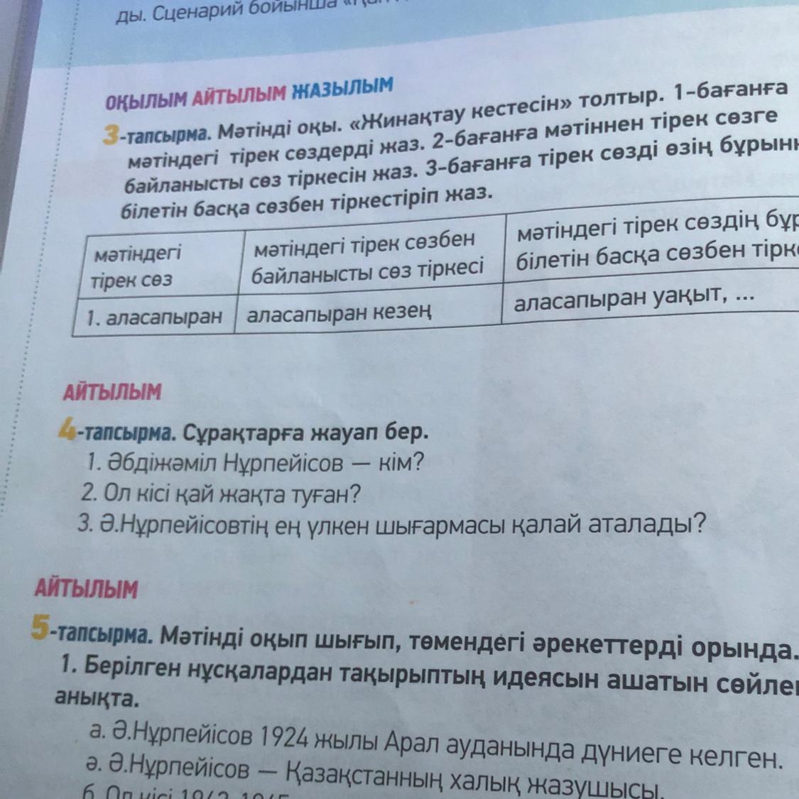 байланысты сез тіркесін жаз. 3-бағанға тiрек саздi езiн бұрыннан