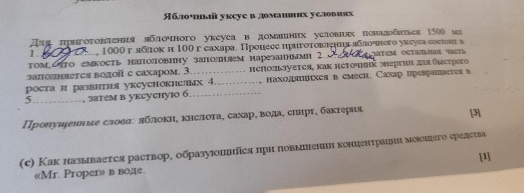 Яблочный уксус в домашних условиях Для приготовления яблочного уксуса в домашних условиях понадобиться 1500 мг том, по емкость наполовину заполняем нарезанными 2. атем остальная часть заполняется водой с сахаром. 3... используется, как источник энергии для быстрого ., находящихся в смеси. Сахар превращается роста и развития уксуснокислых 4. 5........ затем в уксусную б. Пропущенные слова: яблоки, кислота, сахар, вода, спирт, бактерия быстреее ток ответы вот так 1........ пжжж и С) ТОЖЕ ЗДЕЛАЙТЕ ДАЮ ВСЕ МОИ БАЛЛЫ