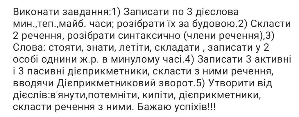 1. Минулий час: записав, знав, летів. Теперішній час: записую, знаю, летить. Майбутній час: буду записувати, буду знати, буду летіти. Розібрати за будовою: записав - дієслово (основа “запис-”; закінчення “-ав”), знаю - дієслово (основа “зн-”; закінчення “-аю”), летить - дієслово (основа “лет-”; закінчення “-ить”).