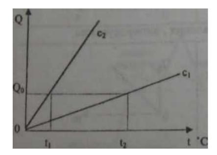 II (2 бали) Подано графік залежності кількості теплоти від температури для двох тіл