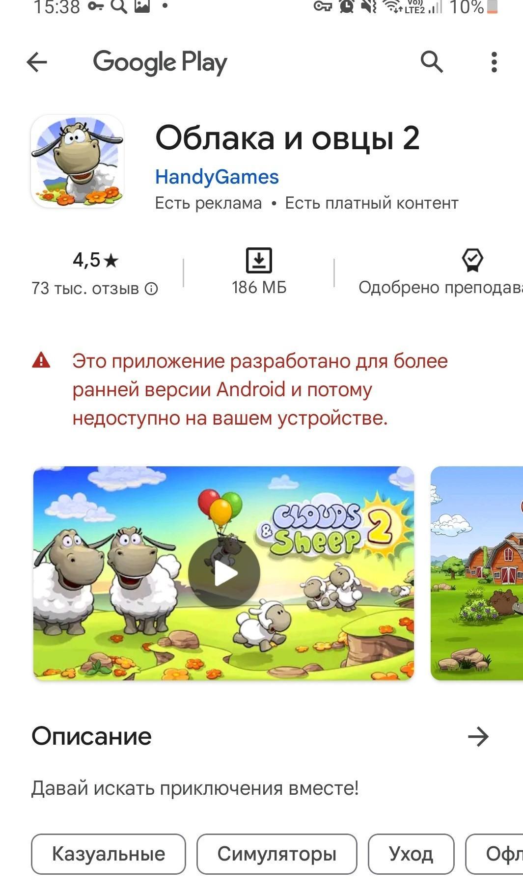 Оно разработано на версии андроид которая вышла раньше твоей версии телефона поэтому она не доступна на твоем устройстве но ты можешь скачать игру через интернет пишешь название игры и ищеш на сайте и скачиваешь (у меня было тоже самое я хотела скачать игру но она была не доступна я ее скачала через интернет)