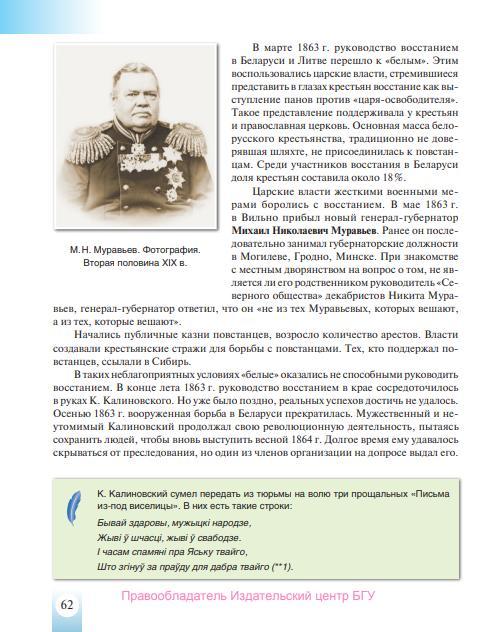 В 1863 году восстание началось в Польше и быстро распространилось на белорусские земли. Однако российская армия успешно подавила восстание, и оно завершилось в 1864 году. Репрессии со стороны российских властей после подавления восстания включали в себя жестокие меры, направленные против национальных и социальных лидеров, а также простых крестьян. Это имело долгосрочные последствия для белорусской и польской идентичности в контексте российского государства.