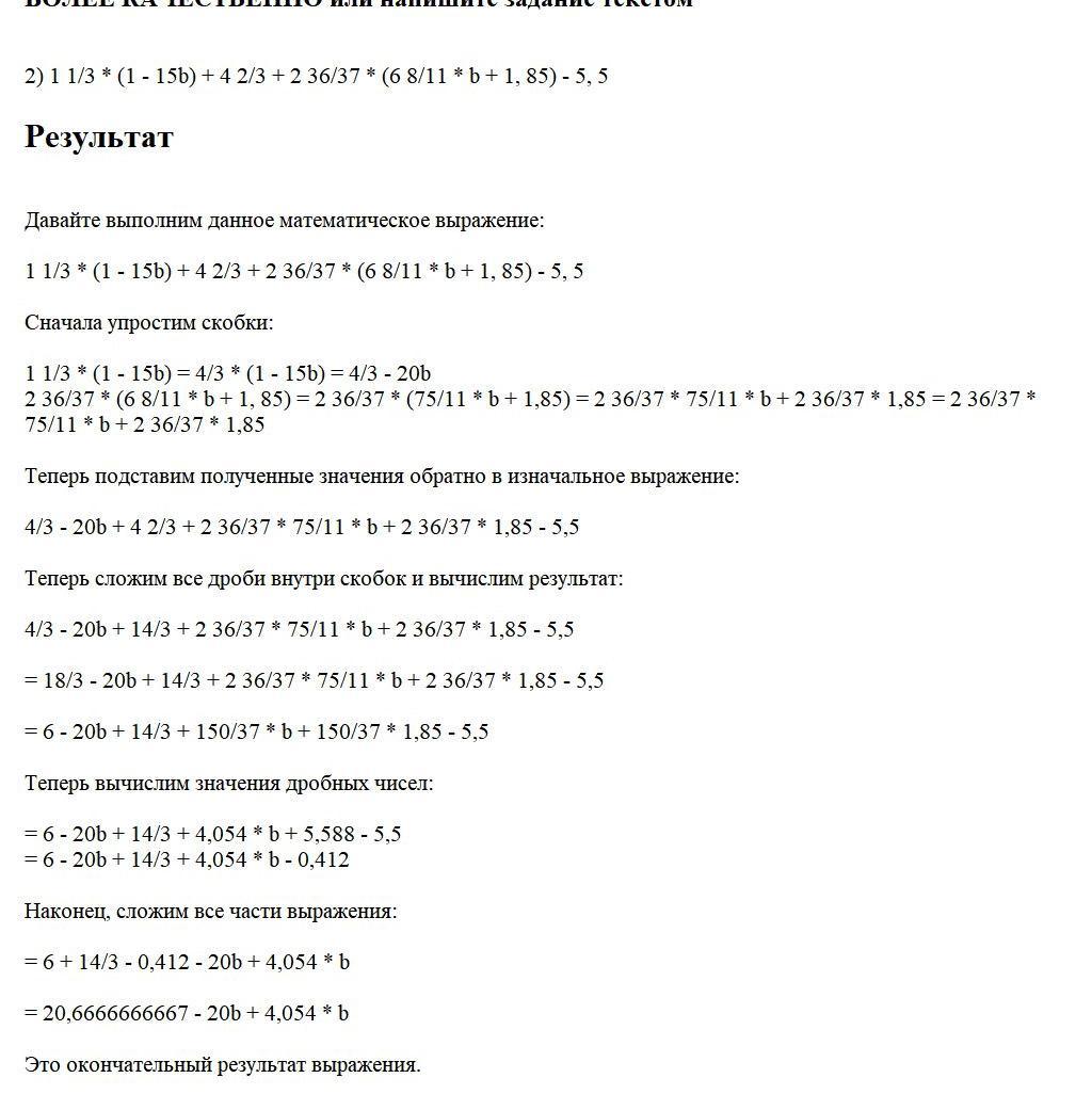 1 1/3 * (1 - 15b) + 4 2/3 + 2 36/37 * (6 8/11 * b + 1, 85) - 5, 5 = 6
