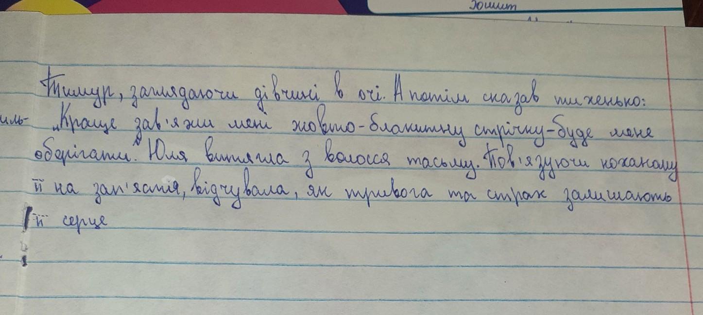 сподіваюсь правильно ,я сама писала ,не впевнена в 4 абзаці чи правильно поставила розділові знаки в першому реченні і другому ,якщо знаєш як правильно виправиш.