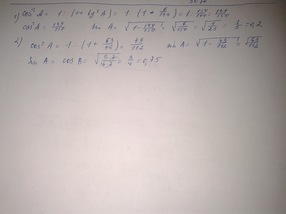 1+tg²A=1/cos²A⇒cos²A=1:(1+tg²A)