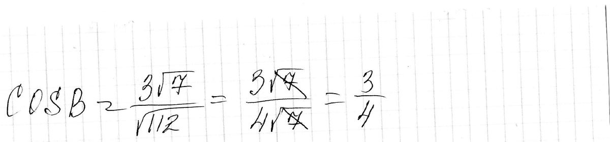 cosB=3 корня из 7/корень из 112 3 корня из 7/ 4 корня из 7=3/4