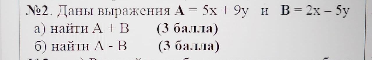 A+B= 5x+9y + 2x-5y= 7x+4y