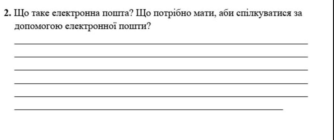 Ответ: Електронна пошта (або email) - це цифровий аналог відправки листа. Кожен email має відправника, отримувача та повідомлення. Основна відмінність полягає в тому, що, замість очікування доставки нашого листа поштою, email відправляється та отримується майже миттєво.