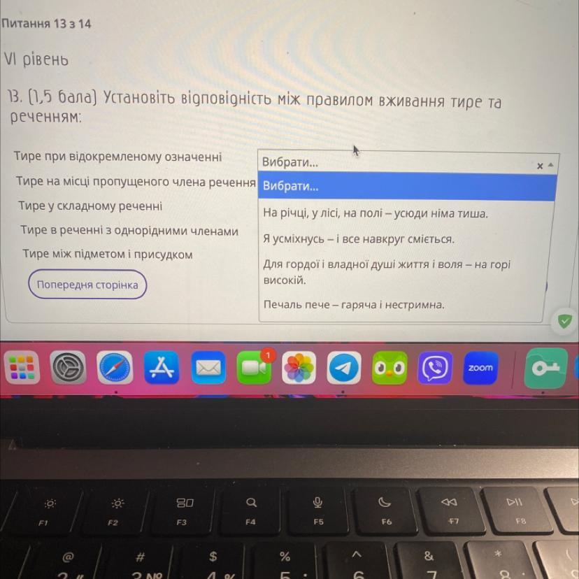 13. (1,5 бала) установіть відповідність між правилом вживання тире та