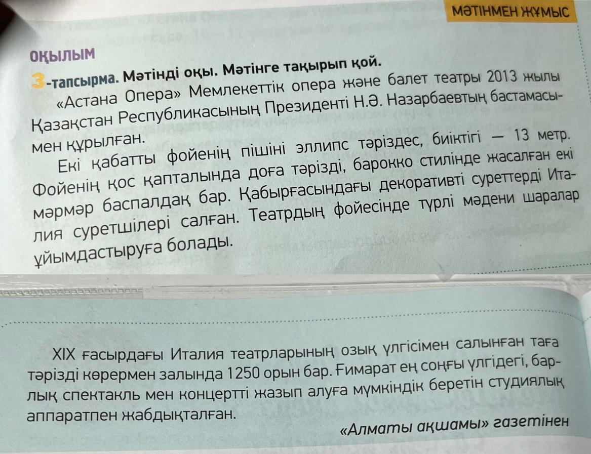1) Менің ойымша "Астана Опера" театры Италиялық театрлардың үлгісінде жасалған еліміздегі ең үздік театр.