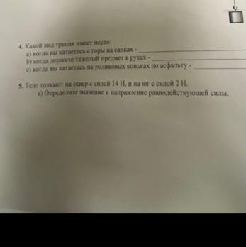 5. Тело толкают на север с силой 14 Н. и на юг с силой 2 н.