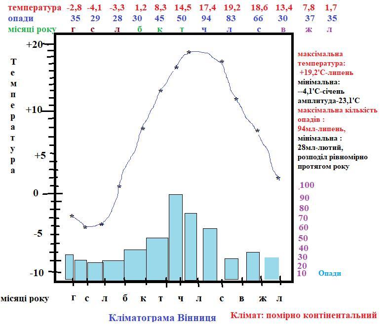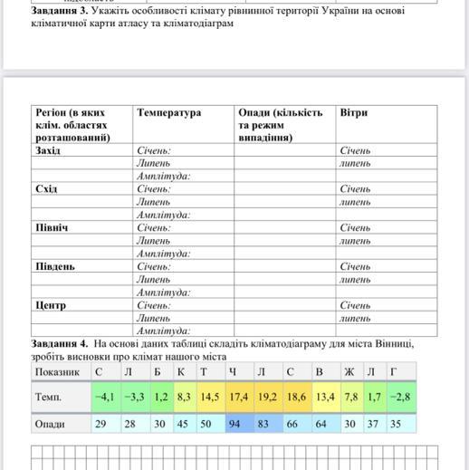 Завдання 4. На основі даних таблиці складіть кліматодіаграму для міста Вінниці,