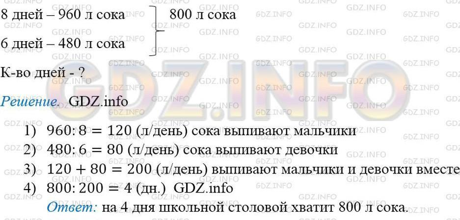 На сколько дней школьной столовой хватит 800 л сока, если мальчики за 8 дней выпивают 960 л сока, а девочки за 6 дней 480л.?