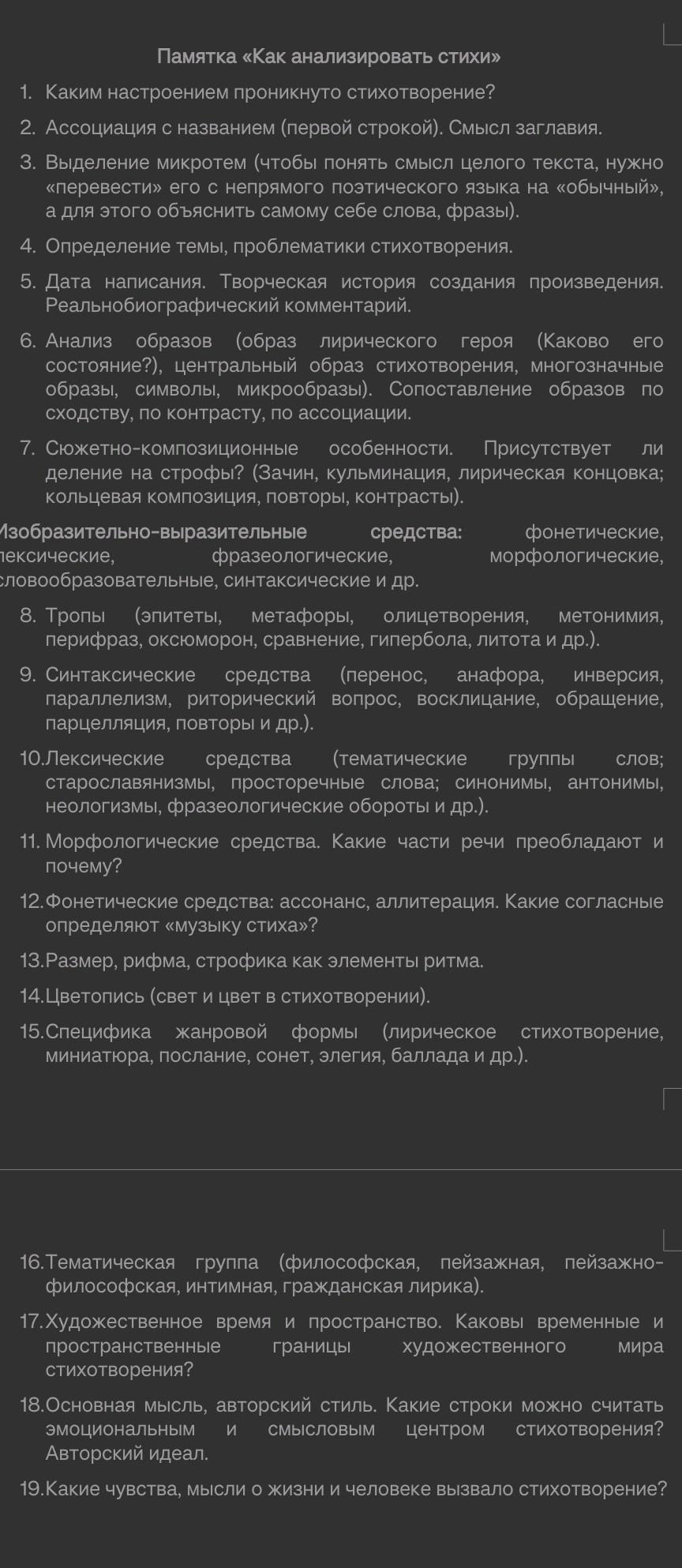 анализ стихотворения "Парус" по памятке (ее я прикрепил) и пожалуйста можно поподробнее