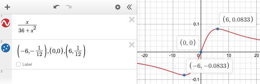 Відповідь: (-6, -1/12), (0, 0), (6, 1/12).