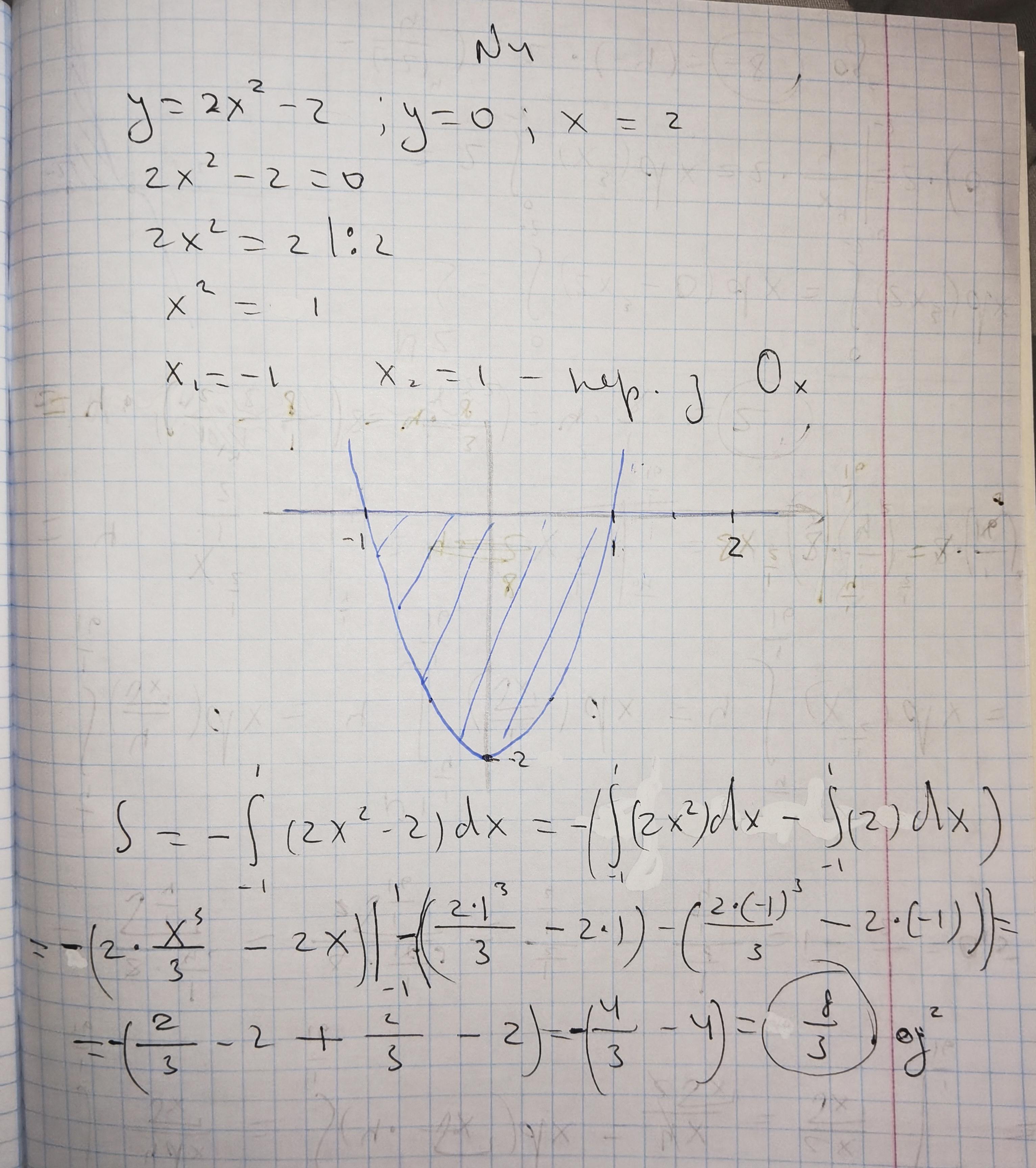Ой блін, сорі, тільки зараз помітила, що в першому забула мінус поставити попереду формули, то там у відповіді 8 од²