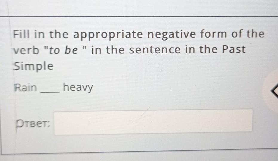 СРОЧНО ПОЖАЛУЙСТА Fill in the appropriate negative form of the verb "to be" in the sentence in the Past Simple Rain heavy