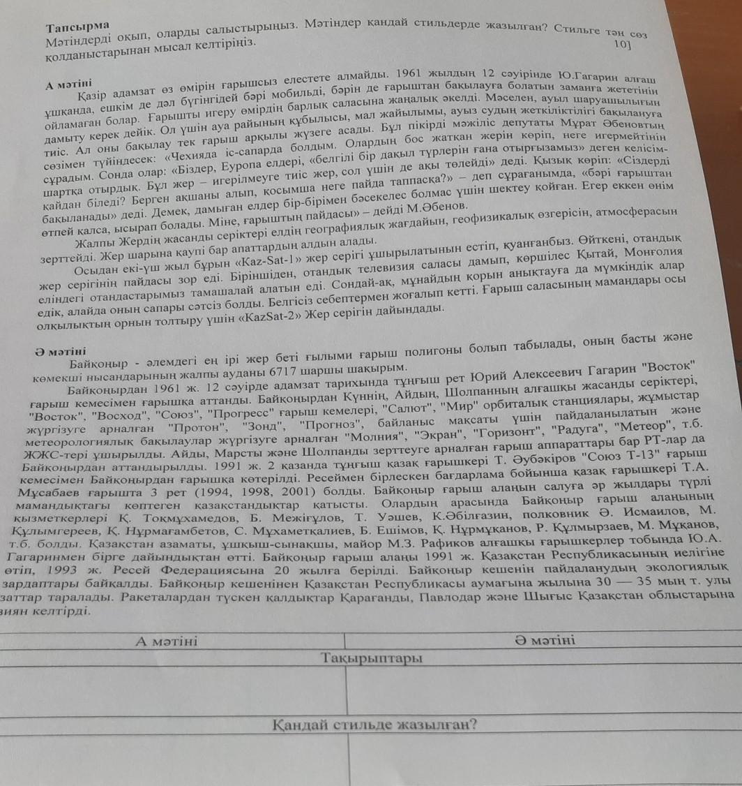 Тақырыптары: А мәтіні-ғарыш туралы