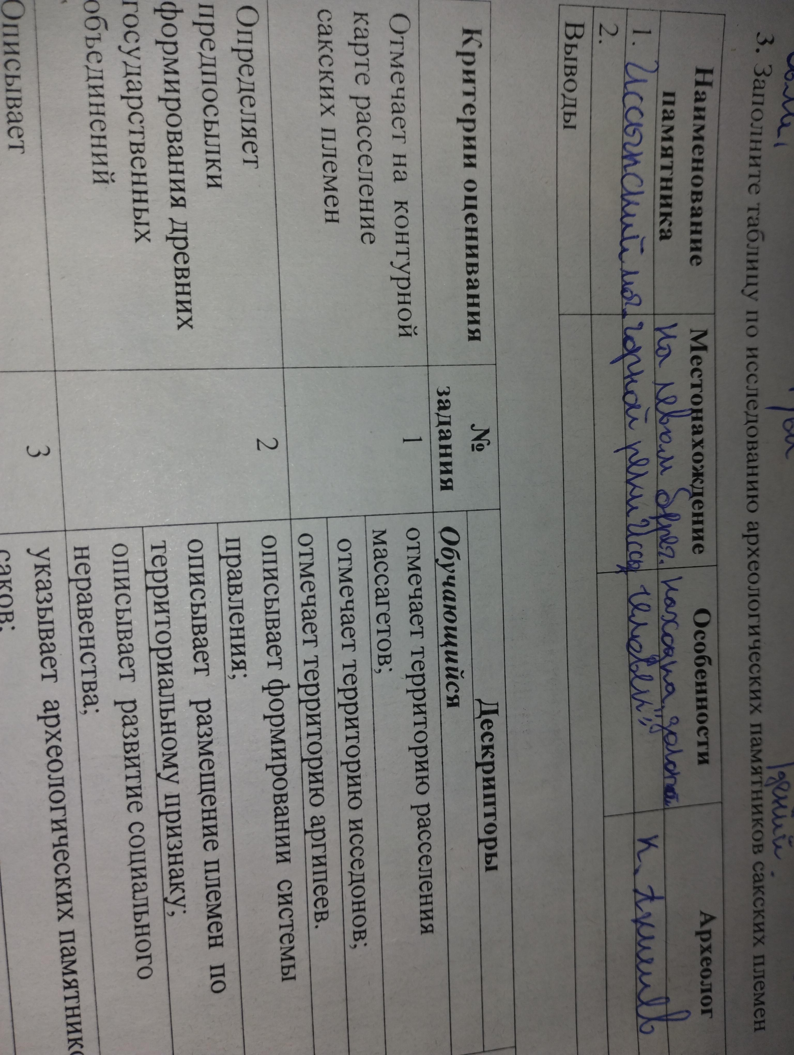 3.Заполните таблицу по исследованию археологических памятников сакских племен